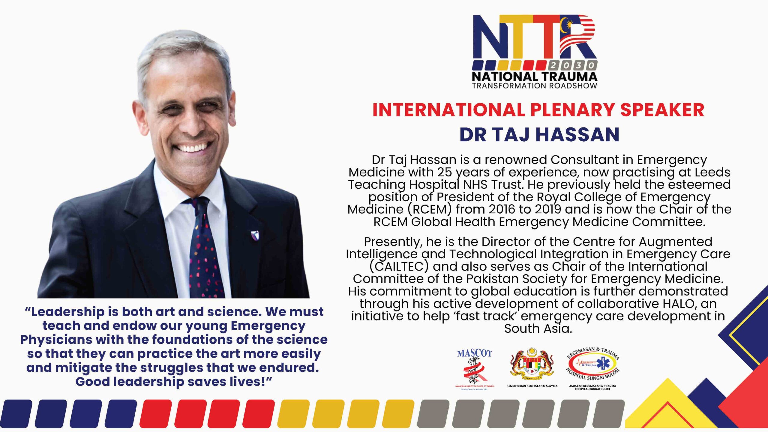 The NTTCR series will span six venues across Peninsular Malaysia, Sabah, and Sarawak. This 2 day event will convene healthcare personnel and leading local and international emergency trauma care clinicians to share global best practices, with the goal of establishing a robust and resilient trauma care system in Malaysia and reducing trauma-related fatalities.