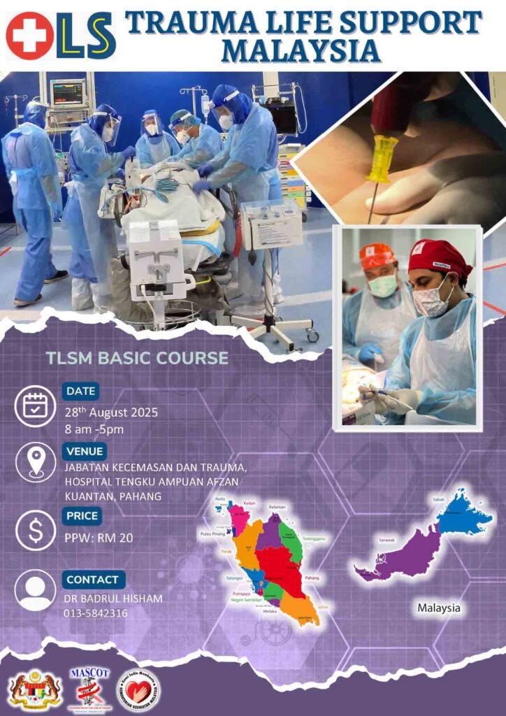The Trauma Life Suppor Malaysia – Basic (TLSM-B) training course is a program that provides participants with basic level of competency training in the management of injured patients.