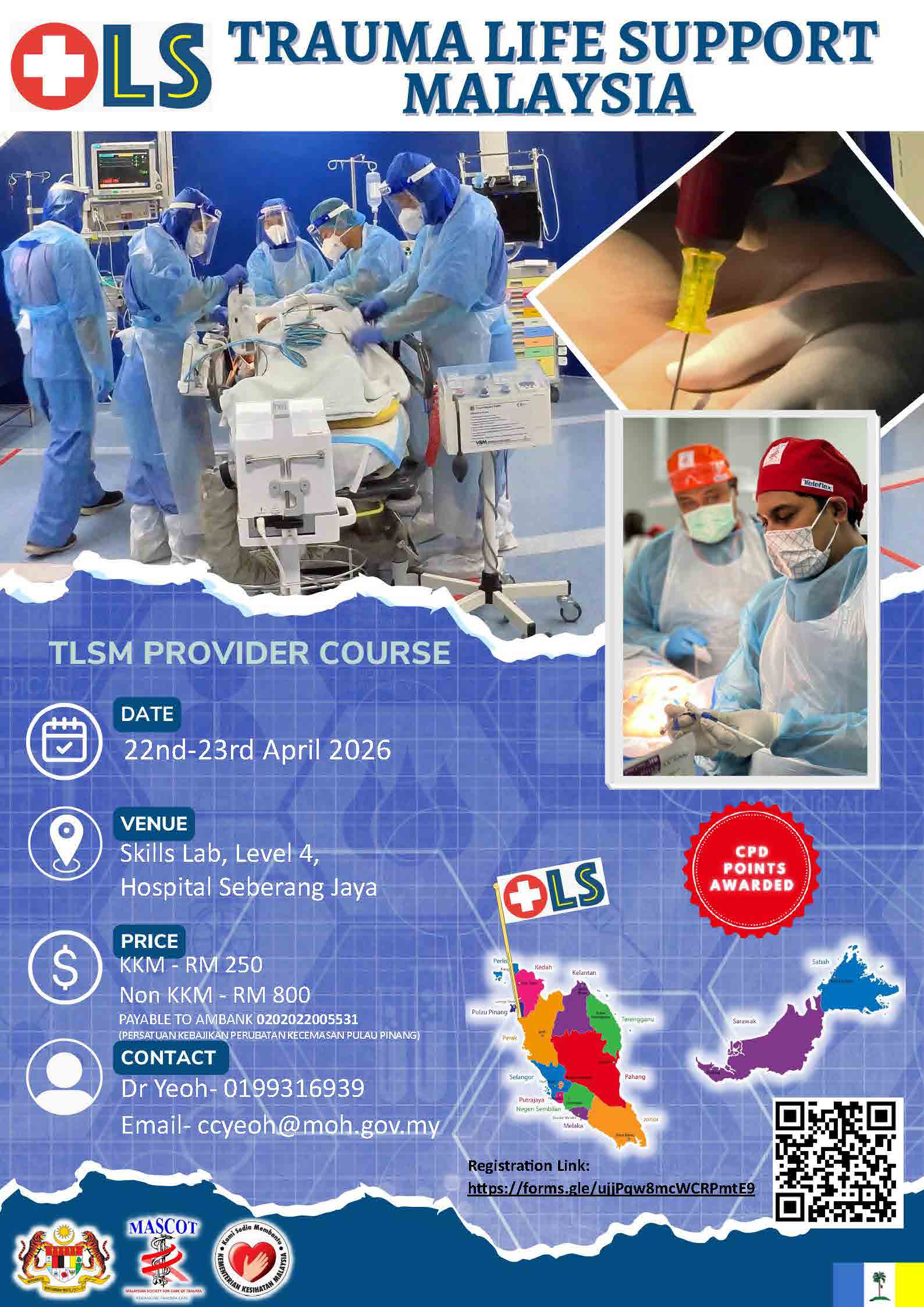 The TLSM Provider Course is organised by Persatuan Kebajikan Perubatan Kecemasan Pulau Pinang.